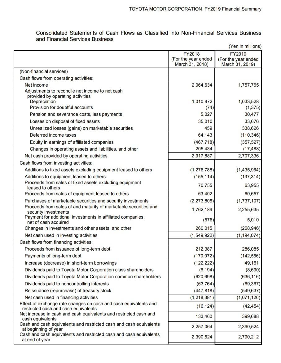 Income statements balance sheets cash flow statements. TOYOTA MOTOR CORPORATION FY2020 Financial Summary.